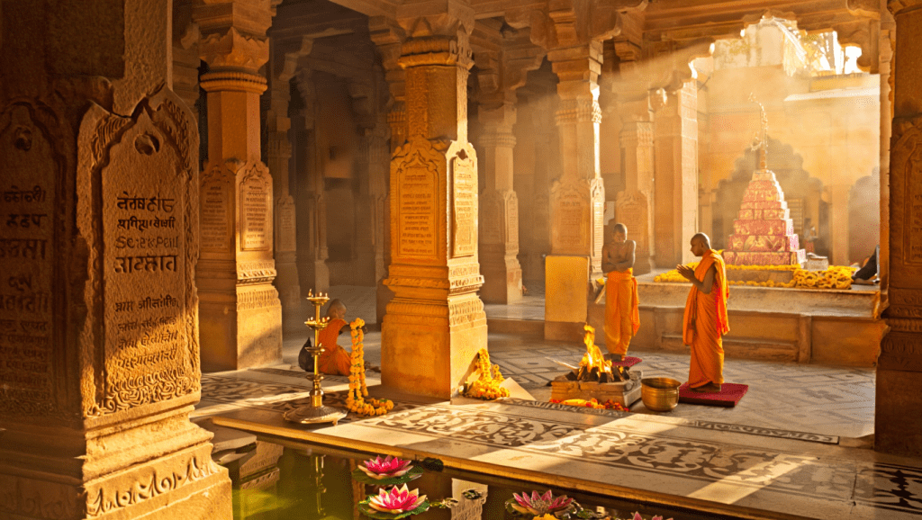 Learn how dharma is practiced — through timeless festivals, sacred rituals, powerful mantras, and transformative journeys to holy places — in the flow of everyday life.”
